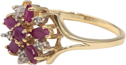 10k Yellow Gold Jewelry 0.48CT Diamond and Ruby Flower Ring Size 7.25
