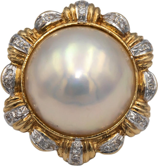 14k White and Yellow Gold 0.25CT Diamond and 16.8-17.0mm Mabe Pearl Earrings