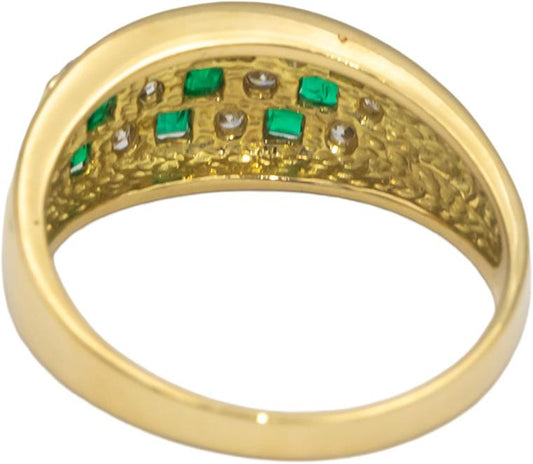 Designer 18k Yellow Gold 0.85CT Diamond and Emerald Band Ring Size 10.5