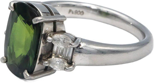 GIA Certified Platinum Diamond & Green Sapphire Cocktail Ring 4.59CT Size 6.75