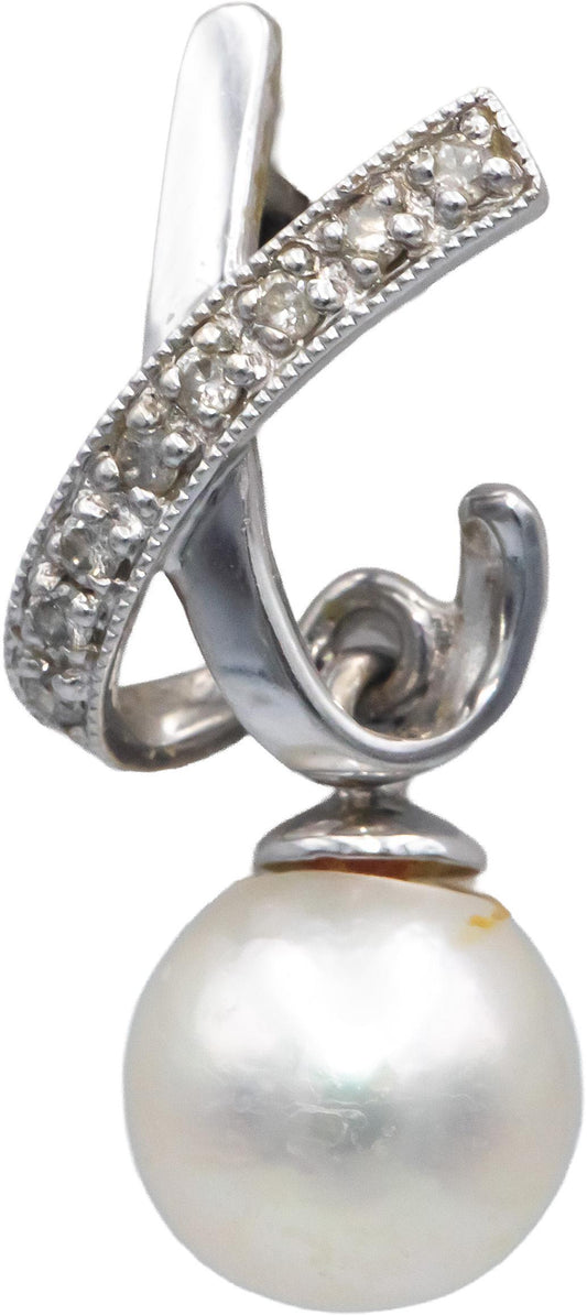 14k White Gold 0.15CT Diamond and 7.5mm Pearl Drop Dangle Earrings