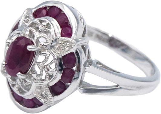 14k White Gold Jewelry 0.53CT Diamond and Ruby Cocktail Ring Size 7