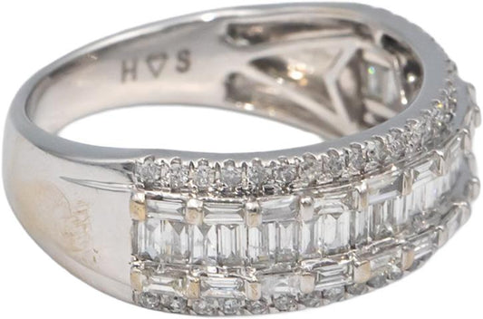 Diamond Round and Baguette Cut 10k White Gold Cluster Band Ring 1.50CT Size 10
