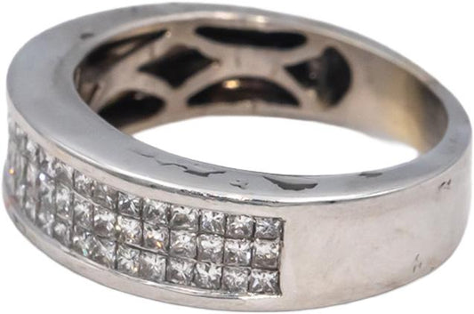 14k White Gold Princess Cut Diamond Three Row Band Ring 1.0CT Size 5.75