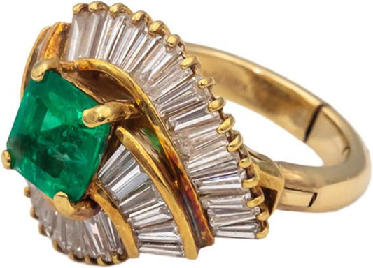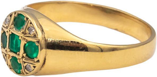 18k Yellow Gold Round Diamond and Emerald Cocktail Ring 0.45CT Size 9.75