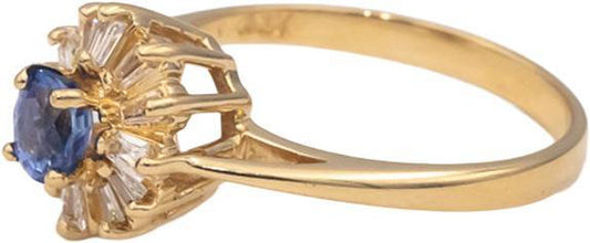 14k Yellow Gold Oval Sapphire Baguette Diamond Halo Ring 0.75CT Size 6.25