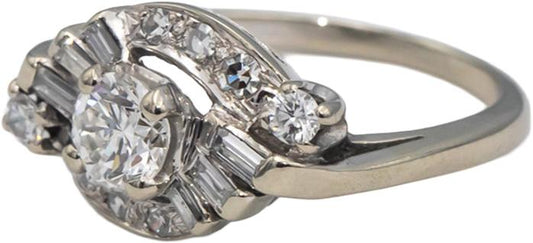 Vintage Antique 14k White Gold Diamond Engagement Ring 0.80CT w/ 0.50CT Center
