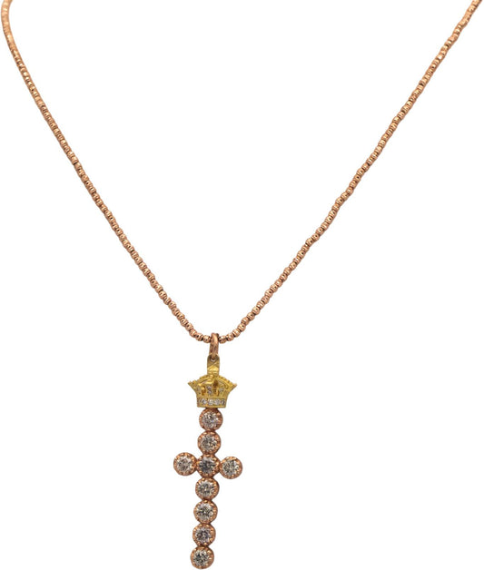 14k Yellow Gold VS Diamond Crown Crucifix Cross Pendant Necklace 2.50CT