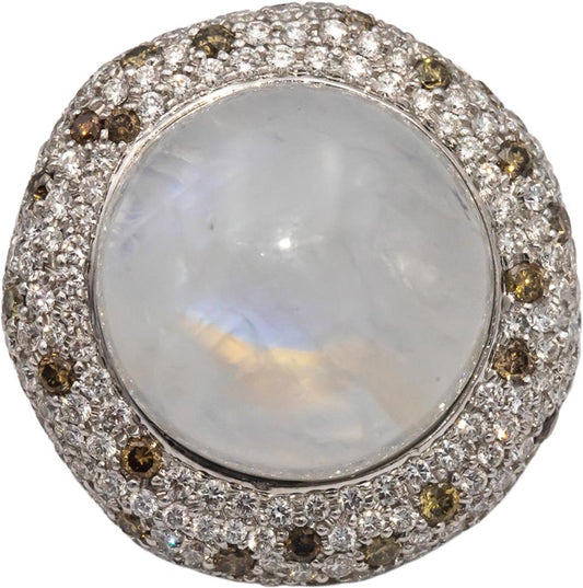 CGL Certified 18k White Gold Round Diamond Cabochon Moonstone Earrings 6.10CT