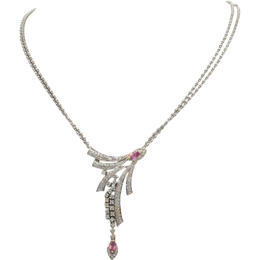 18k White Gold VS Round Diamond & Marquise Pink Sapphire Pendant Necklace 1.11CT