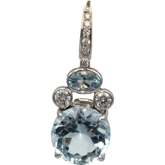 18k White Gold Jewelry VS Diamond & Aquamarine Drop Earrings 6.18CT