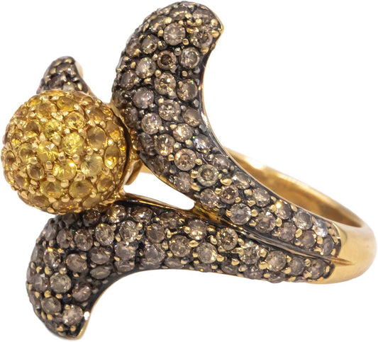 18k Yellow Gold 2.0CT Brown Diamond Yellow Sapphire Flower Ring Size 5.5