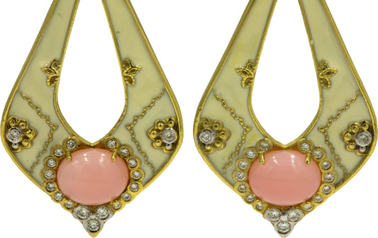 STAMBOLIAN 18k Yellow Gold 4.78CT Diamond and Pink Stone Drop Dangle Earrings
