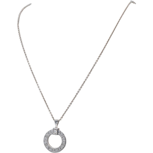 BVLGARI VS Round Diamond 18k White Gold Pendant Necklace .15CT w/ Box