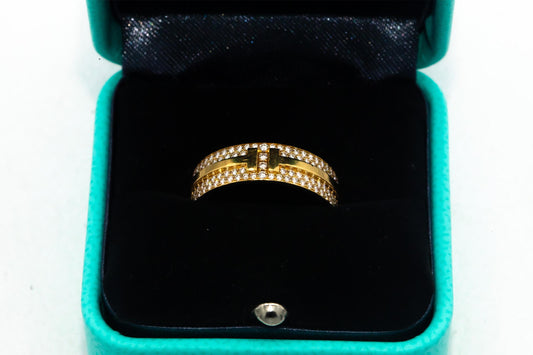 TIFFANY & CO. 18k Gold Diamond T Wide Pave Ring 0.57CT Size 6 w/ Box $10,500