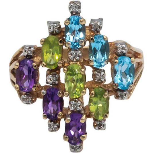 10k Yellow Gold Diamond and Assorted Gemstone Cluster Ring 1.30CT Size 7.5