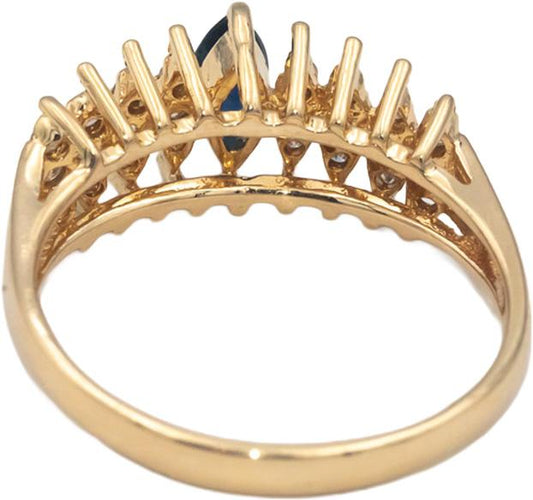 14k Yellow Gold Round Diamond and Marquise Cut Sapphire Ring 0.44CT Size 6.25