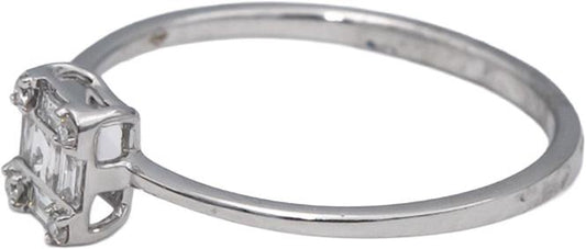 18k White Gold VS Emerald Cut Diamond Solitaire Band Ring 0.08CT Size 7