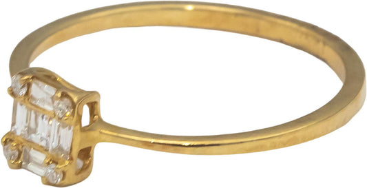18k Yellow Gold Round & Emerald Cut Diamond Cluster Ring 0.15CT Size 7.25
