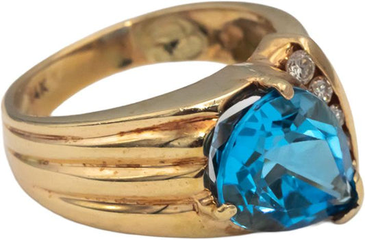 14k Yellow Gold Pear Cut Blue Topaz Round Diamond Cocktail Ring 3.08CT Size 5.25