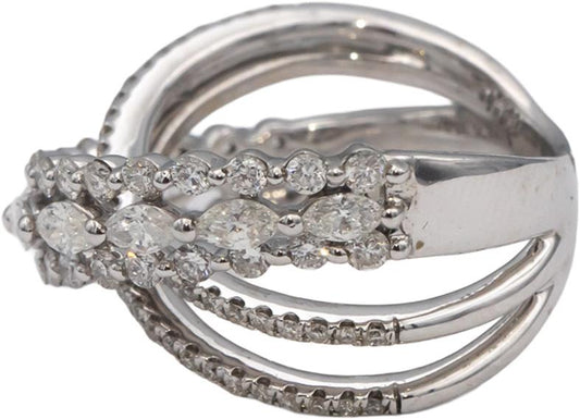 18k White Gold Marquise & Round Diamond Crossover Band Ring 1.75CT Size 8