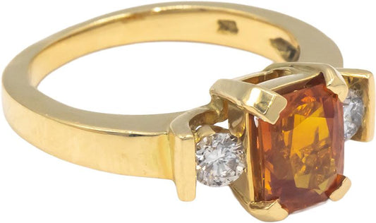 18k Yellow Gold 1.95CT Diamond and Orange Sapphire Cocktail Ring Size 5.75