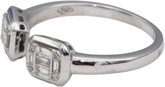 18k White Gold VS Emerald Cut Diamond Open Bypass Cuff Ring 0.25CT Size 6.75