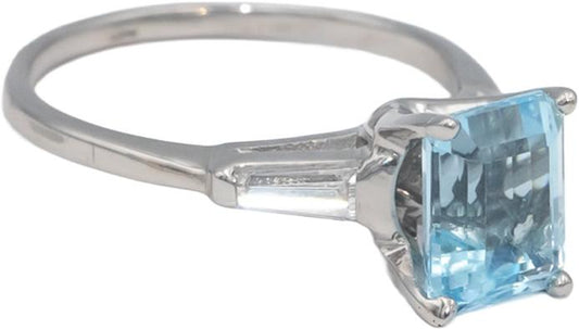 14k White Gold Diamond and Aquamarine Cocktail Ring 2.99CT Size 9