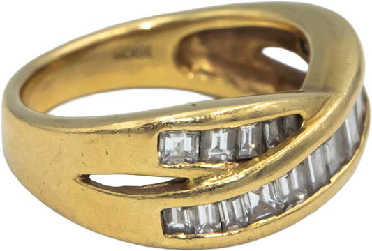 18k Gold Baguette VS Diamond Channel Set Crossover Band Ring 1.50CT Size 6.25