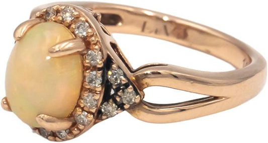 LE VIAN 14k Rose Gold Oval Cabochon Opal & Diamond Ring 0.15CT Size 4.25