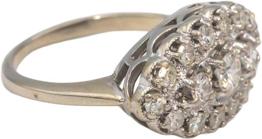 Antique Vintage 14k White Gold Diamond Cocktail Ring 1.0CT Size 7