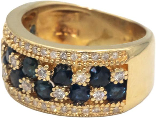 EFFY Diamond and Sapphire 14k Yellow Gold Wide Band Ring 1.05CT Size 5.5