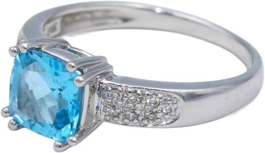 14k White Gold Diamond and Blue Topaz Cocktail Ring 1.57CT Size 7.25