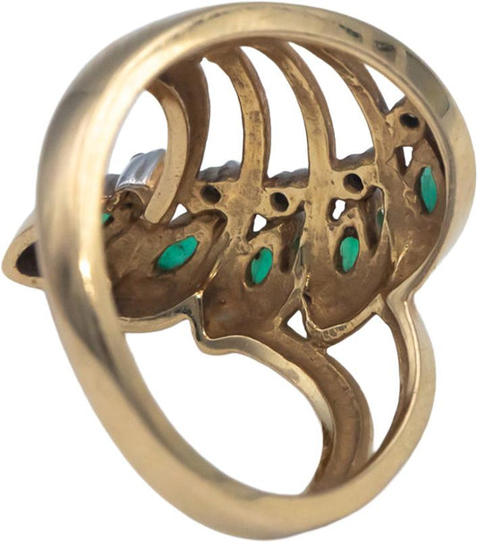 14k Yellow Gold Round Diamond and Marquise Emerald Cocktail Ring .25CT Size 6.75