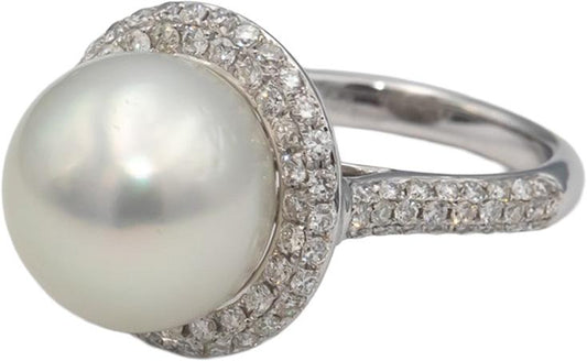 18k White Gold VS Round Diamond & 12.8-12.9mm Pearl Ring 1.04CT Size 6.75