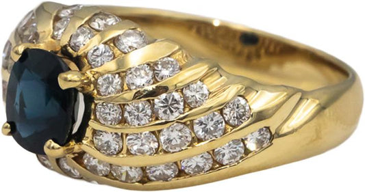14k Yellow Gold Oval Sapphire VS Round Diamond Cocktail Ring 1.60CT Size 6