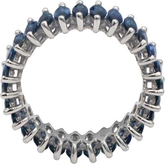 18k White Gold Marquise Cut Blue Sapphire Eternity Band Ring 4.40CT Size 7.5