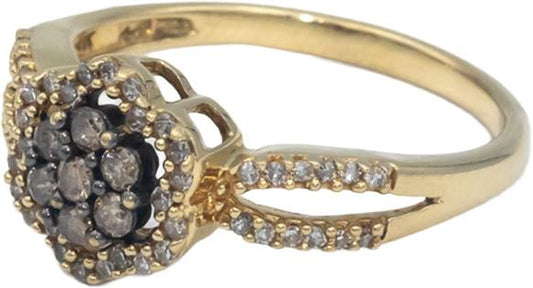 14k Yellow Gold Round Diamond Flower Cocktail Ring 0.30CT Size 7
