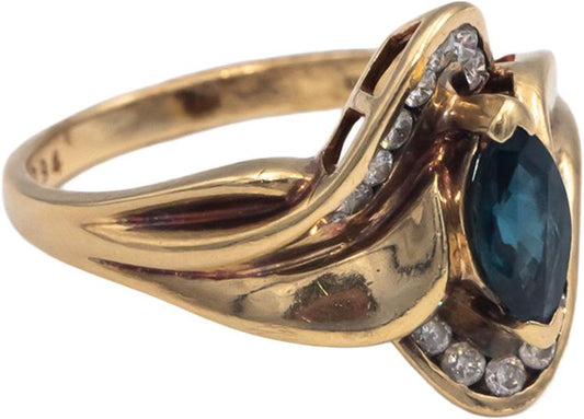 10k Yellow Gold Jewelry Round Diamond Oval Sapphire Cocktail Ring 1.0CT Size 7