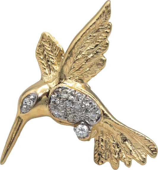 14k Yellow Gold Round Diamond Hummingbird Brooch Pin 0.10CT