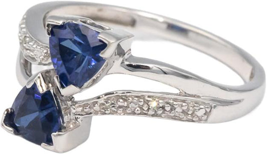 10k White Gold Synthetic Blue Sapphire and Diamond Ring 1.0CT Size 6.75