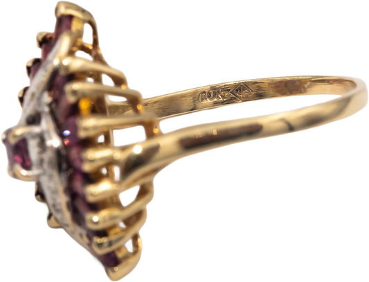 10k Yellow & White Gold Diamond and Ruby Cocktail Ring 1.05CT Size 8.5