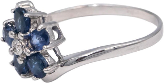 14k White Gold Oval and Round Sapphire and Diamond Flower Ring 1.26CT Size 8.5