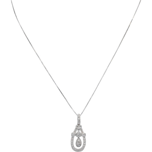 14k White Gold 0.50CT Round Cut Diamond Cluster Ribbon Pendant Necklace
