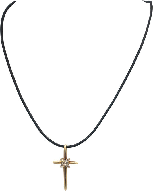 14k Yellow Gold 0.10CT Round Cut Diamond Cross Crucifix Pendant Necklace