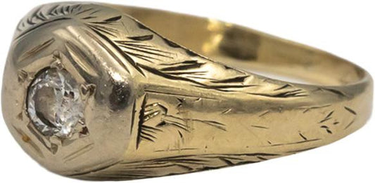 Antique Vintage 10k White Gold Diamond Solitaire Filigree Ring 0.20CT Size 3.75
