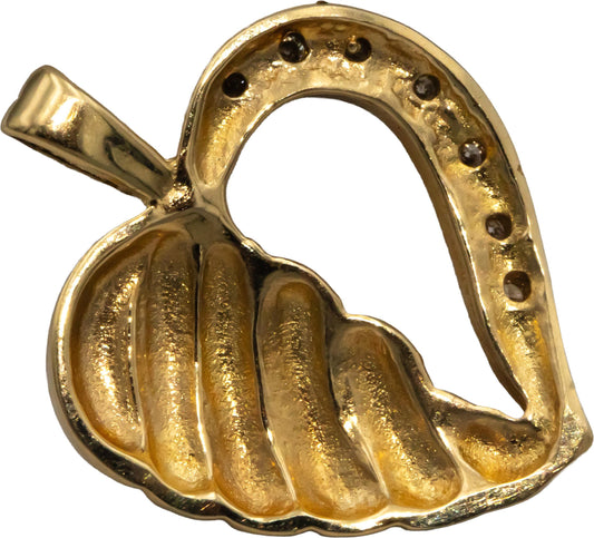 14k Yellow Gold 0.08CT Round Cut Diamond Floral Leaf Heart Pendant