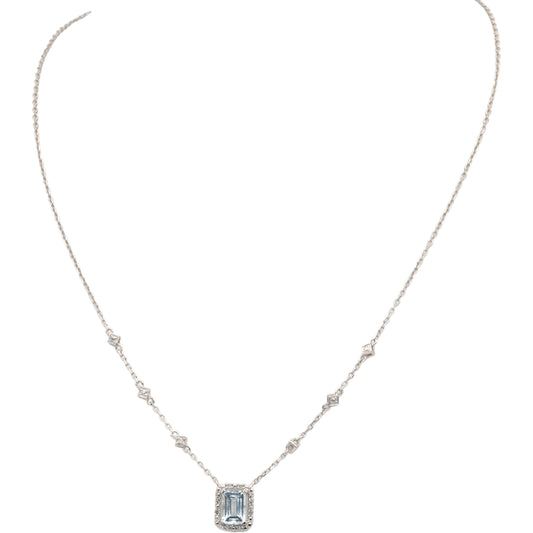 Diamond and Aquamarine 10k White Gold Jewelry Pendant Necklace 1.10CT