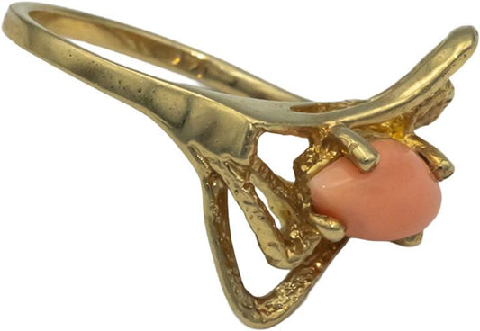 14k Yellow Gold Cabochon Pink Coral Solitaire Ring Size 5.75