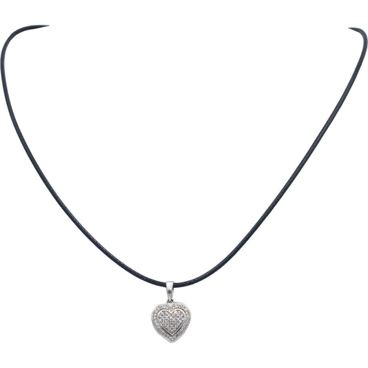 10k White Gold VS Round Cut Diamond Cluster Heart Pendant Necklace 0.25CT